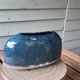 手工捏制椭圆扁形陶瓶/蓝色陶瓶花器 弧线椭圆扁型的花器,灵感来自美人垂肩的弧线 手做成型,每ㄧ个都是独一无二的存在