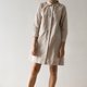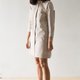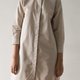 This basic shape dress shirt is not basic at all because of the design fray hem pleat at the back. The knee length nice cutting dress shirt is very easy to wear and no need to add anything. It is a complete look. The pleat design at the back creates a very nice structure and silhouette. The length is just fine. Not too long not too short. Three quarter sleeves give you a very formal look. Wearing it as a summer coat is a very creative idea.