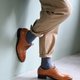 林果推出新色-蜜棕色,在原本雾面的皮革上推蜡,呈现出亮泽感的蜜棕色。选择较厚的牛皮让鞋型更加硬挺,经过长时间穿着后更加合脚。不只穿的舒适,也能轻松搭配。