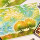 画水彩时,将纸彻底润湿,让颜料渗色。让它干燥并一遍又一遍地涂抹。其特征是淡蓝色中隐约可见黄色,色彩柔和地展开。