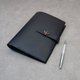 ● 皮革笔记本以侧边圆型设计,约直径1cm,可插入笔,固定笔记本,方便书写。(注意:照片中手表、笔仅于拍摄使用,无与本产品一起售出)