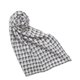 以深蓝与灰色为底并点缀纯白营造出优雅且沉稳的氛围。轻盈通透的质感来自特意留下些许空隙的织纹设计,让这款围巾能从初秋陪伴您到隔年初春。