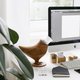 Bedside bird lamp made of solid oak with matte crystal cap. Cool housewarming gift idea for bird decor lovers.