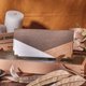 皮革纸,是种可降解的天然无害纤维品。 厚度0.55mm,却如皮革般坚韧耐磨,可湿水亦撕不破。 ideasfromlife利用他成功取代动物真皮,减少残忍杀生,设计多款生活小物,展现其独特性,发挥纸造可能,推广自然生态的保育意识。