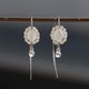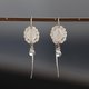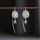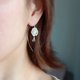 以银为基底,缀以彩虹月光石与珍珠的弧形钩式耳环。