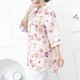 酒红色花朵印花中山领上衣 杏色 - 女装上衣 - 其他材质 白色