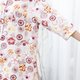 酒红色花朵印花中山领上衣 / 杏色 透气舒适,夏秋皆宜