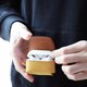 简洁俐落的袋鼠耳机包Kangaroo,单片意大利植鞣皮革折叠而成的环抱包覆结构,为您的AirPods提供一个合身而且稳固的收纳空间,并可直接进行充电。