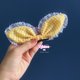 儿童发饰 造型兔兔造型 采用格纹棉布手工缝制,并点缀蕾丝荷叶边
