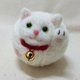 小树懒家的猫对任何球状物都无法抗拒,更不要说是毛线球了,毛线球一出他们就玩疯了,猫跟球缠在一起,也不知道是球里有猫还是猫里有球XDD,因此小树懒特别尝试将羊毛毡跟毛线做结合生出了这款"猫"线球钥匙圈系列,因为是毛线球所以有圆滚滚的身材还有毛线小尾巴都很可爱喔~~这次登场的是招财猫款 圆滚滚的招财猫 象征财源滚滚来喔配~上可爱的金色小铃铛 还有高高举起的小手 除了招财之外也在对你说声Hi喔~ 希望大家会喜欢这款最新喵星人的猫线球钥匙圈系列!!