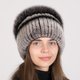 女士针织毛绒帽,选用天然兔毛制成,搭配狐狸毛绒球及镶嵌莱茵石与宝石的兔毛蜻蜓装饰