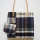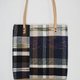 此款肩背包特别之处是布料是纯手工织布, 两面的格纹图案不相同, 独一无二。