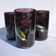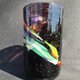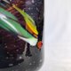 * A stick (cane) made by thinly drawing colored glass is heated with an oxygen torch to draw a star. The pattern of flowing stars is also colored glass.
