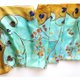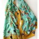 Blue green and Ocher scarf hand painted in Art Deco style.