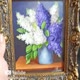 花画"丁香"。,18厘米x13厘米。 100%来自俄罗斯手工制作。 它以尺寸为23x18cm的框架出售。 油画。 原来的油画。 作者是艺术家Marina Mamonchik。