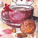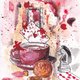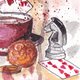 - Still life alice in wonderland, tea party, cup, cards, chess, watercolor splashes
