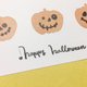 Handwritten character stamp of happy halloween where spid hangs spider,