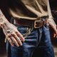 您的名字或字母縮寫將被永久燙印在皮革上,我們將銅模加熱到400華氏度以上,然後加入金箔紙,