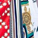 裙子以领带脚作为发想形态,不用传统领带布料,改用女性化的红色碎花布,民族印花布,华丽丝巾布,晚装裙布,手绘日本风插画等,再加上反光运动感活动性橡筋腰带,款式易于穿着,华丽富时代感!