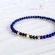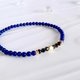 小巧的青金石圆珠配搭黑尖晶石切面珠,再缀以包金珠,蓝黑金配色时尚又带精致感。