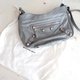 **Balenciaga灰色经典机车款迷你跨包手袋 Gray signature leather mini crossbody handbag**