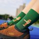 喜欢绿色系穿搭的人也很适合以浅粉袜搭配喔~
