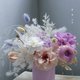 这款永生盆花以紫色、粉色、白色玫瑰等高品质永生花材为主,搭配细腻的干燥花饰,如兔尾草与麦穗,营造出柔美且富有层次感的视觉效果。紫色花器低调优雅,与花材色彩相得益彰,适合摆放于卧室、书房或客厅,带来舒适惬意的氛围,也是一份充满情感与质感的礼物。
