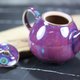 本壶型,以可爱的饭团造型为设计核心,像颗感的饭团,故取名本丸,器型圆润饱满,十分耐看。而本壶施以玫瑰紫钧釉,更显典雅。
