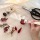 压克力板、我们调制的酒红色颜料、日本进口的金色颜料、花材、叶材、果实、插花海绵、简易教学步骤