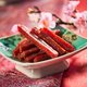 “炙烧猪肉条“吮指Q弹,甜甜的味道仿佛刚出炉的蜜汁火腿,喜爱嚼劲口感的时尚达人第一首选!