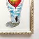 黑猫 黑猫手绘插画水彩艺术印刷品海报可爱温馨图画书气球室内古色古香独特的天空