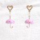 制作这对雨伞耳环的工序不少,每朵小花是设计师挑选过的,渐变色都是经多次倒模试验,才有满意效果。雨伞的内里还加了伞骨加强硬度,亦用了不锈钢配件做伞柄,加上了uv胶连接,饰物的小细节小珠子都不会轻易掉下来~