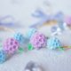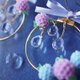 以绣球花编织而成的花圈耳环。