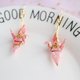 18kgf包金 -日本独家防水-祝福好运和风可爱浪漫简约折纸千鸟千纸鹤垂坠耳环 金粉色樱花