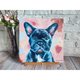 一幅带有可爱法国斗牛犬的油画以 30/30 厘米格式绘制在担架上的画布上。一幅带有狗的明亮画作可以装饰您的室内空间,也可以成为您所爱之人的难忘礼物。 这幅画的作者、艺术家 - 玛丽娜莱西纳。 100%手工制作,原画。