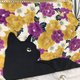 嘿!妳注意到了吗?黑猫正在凝视着一隻藏在花丛裡的金色蝶。(金色蝶也是手工缝製)