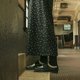 2.黑色油蜡牛皮,搭配领口及鞋面U形米白牛皮,复古优雅的外型。