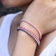 这是用淡粉色,令人震惊的粉红色和紫色棉蜡线制成的手工编织手链