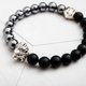 - 8mm太赫兹能量石、8mm雾面黑玛瑙、S925银(银配件一套共三个)