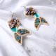 刺绣美人鱼尾巴耳环|钩和夹式耳环