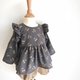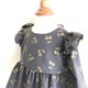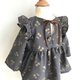 A gorgeous gray back gold cherries pattern is a fashionable ruffle shoulder sleeve tunic and corduroy bullmer setup ☆