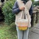 制作时,增加包包的厚实度,保持编织的垂坠感之外,也兼具实用性。在搭配颜色上有趣的排列组合,是出门穿搭的好配件。