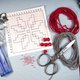 您需要大约 58 m 的 1 毫米或 1.5 毫米线、8 毫米珠子和籽珠。