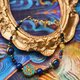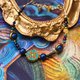 - 宛如遗落在时光之中的吉光片羽, 以青金石与凤凰青石堆叠出东方古国的神秘意象, 搭配黄水晶与红石榴石点缀如宝石般的华丽光芒, 中心以珐琅图腾作为视觉焦点,呈现如古寺壁画般的庄严与灵性。