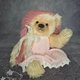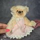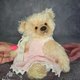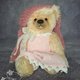 泰迪熊采用德国马海毛缝制而成,并填充合成填充物。我在肚子里添加了一点金属颗粒,以获得令人愉悦的熊体重。采用泰迪熊技术,使用圆盘和开口销制成。