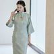 - 【玉瓷】 新中式復古/古法双襟倒大袖/织锦缎旗袍