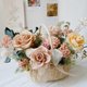 **花材|**主花为不凋玫瑰花(永生花),配花含不凋绣球花与其他季节性花材与叶材