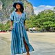 - 简约、优雅的和服风格设计,深 V 领口和长领带。