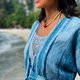 - 100% 生态手工染色面料,呈现多种靛蓝色调。 棉质薄而柔软。