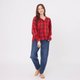 布料微光澤質感佳,搭配牛仔褲率性優雅